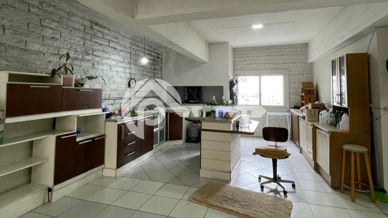 Cozinha mobiliada com churrasqueira, um quarto e lavanderia